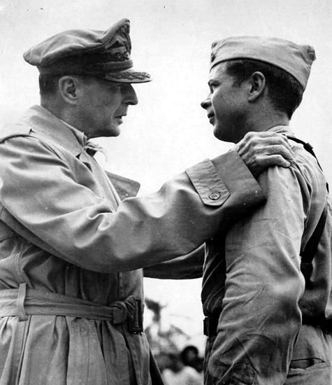 1944: MEDAL OF HONOR: Maj Richard I. Bong, with 38 aerial victories, receives the medal from General MacArthur in ceremonies in the Philippines. Citation: http://www.cmohs.org/recipient-detail/2646/bong-richard-i.php