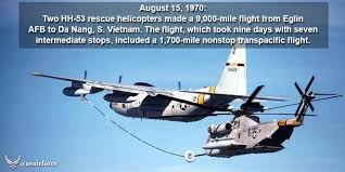 1970: Two HH-53s complete the 1st nonstop transpacific helicopter flight as they land at Da Nang AB, South Vietnam, after a 9,000-mile flight from Eglin AFB, FL.