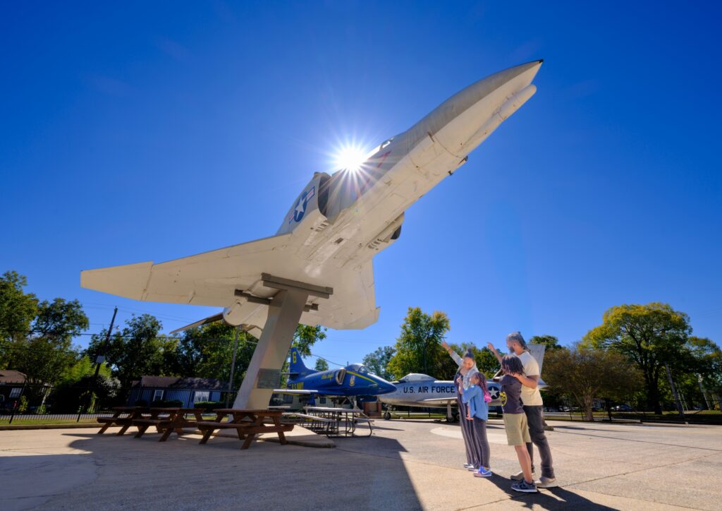 Museum highlights include a large exhibit on the groundbreaking Tuskegee Airmen, including three WWII-era trainers and the last known B-25 Mitchell flown by the Airmen; an exquisite full-sized replica of the 1903 Wright Flyer; a 1920s Huff-Daland crop duster that began Delta Airlines; a Korean War diorama featuring an F-86 Sabre and a North Korean MiG-15; and an A-12 Cygnus spy plane that could fly at Mach 3+. Other features include the Shadow Gallery, which tells the story of America’s covert operations through paintings and memorabilia; the Alabama Aviation Hall of Fame, with its exhibit cases and 80 biographical plaques honoring our state’s aviation history; and a playroom for our youngest visitors.